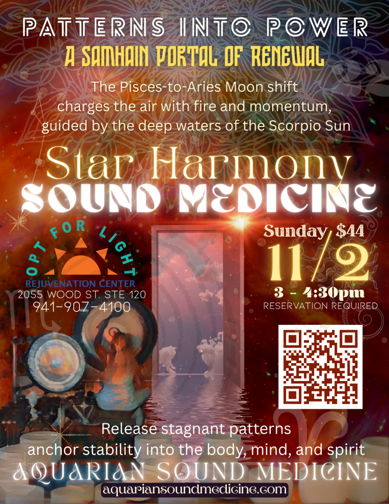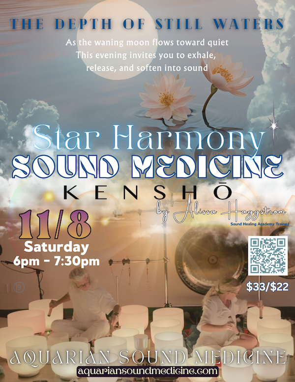 Join us for an immersive evening of sound, breath, and stillness under the Scorpio Sun and Virgo Moon. This mid-autumn Sound Medicine Ceremony is designed for deep release, nervous system balance, and soulful integration.